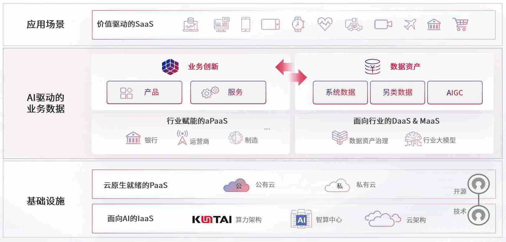 数字时代,,围绕企业数字化转型的关键要素,,,365钱包数码开创性的提出数云融合战略和技术体系框架,,,着力在云原生、、、、数字原生、、AI原生和信创产业上架构产品和服务能力,,,为处在不同数字化转型阶段的快消零售、、、、汽车、、、金融、、、、医疗、、、政企、、、、教育、、、、运营商等行业客户提供泛在的敏捷IT能力和融合的数据驱动能力,,,,构建跨界融合创新的数字业务场景和新业务模式,,助力企业级客户建立面向未来的核心能力和竞争优势,,,,全面推动社会的数字化、、、智能化转型升级。。。。